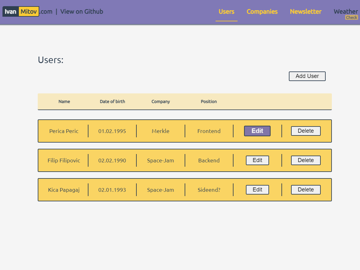 Опис: Покушавам да научим ,,јс промисе", мало PHP-а и базе. Такође и могућност регистрације корисника и њихове пријаве. (Не стављајте праве информације, не знам колико је ово логиновање сигурно xD)